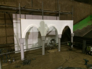 - Dogepaleis: 12 x 6 meter. Staande op een ponton in de Alm. Dient als projectiescherm voor de presentatie.